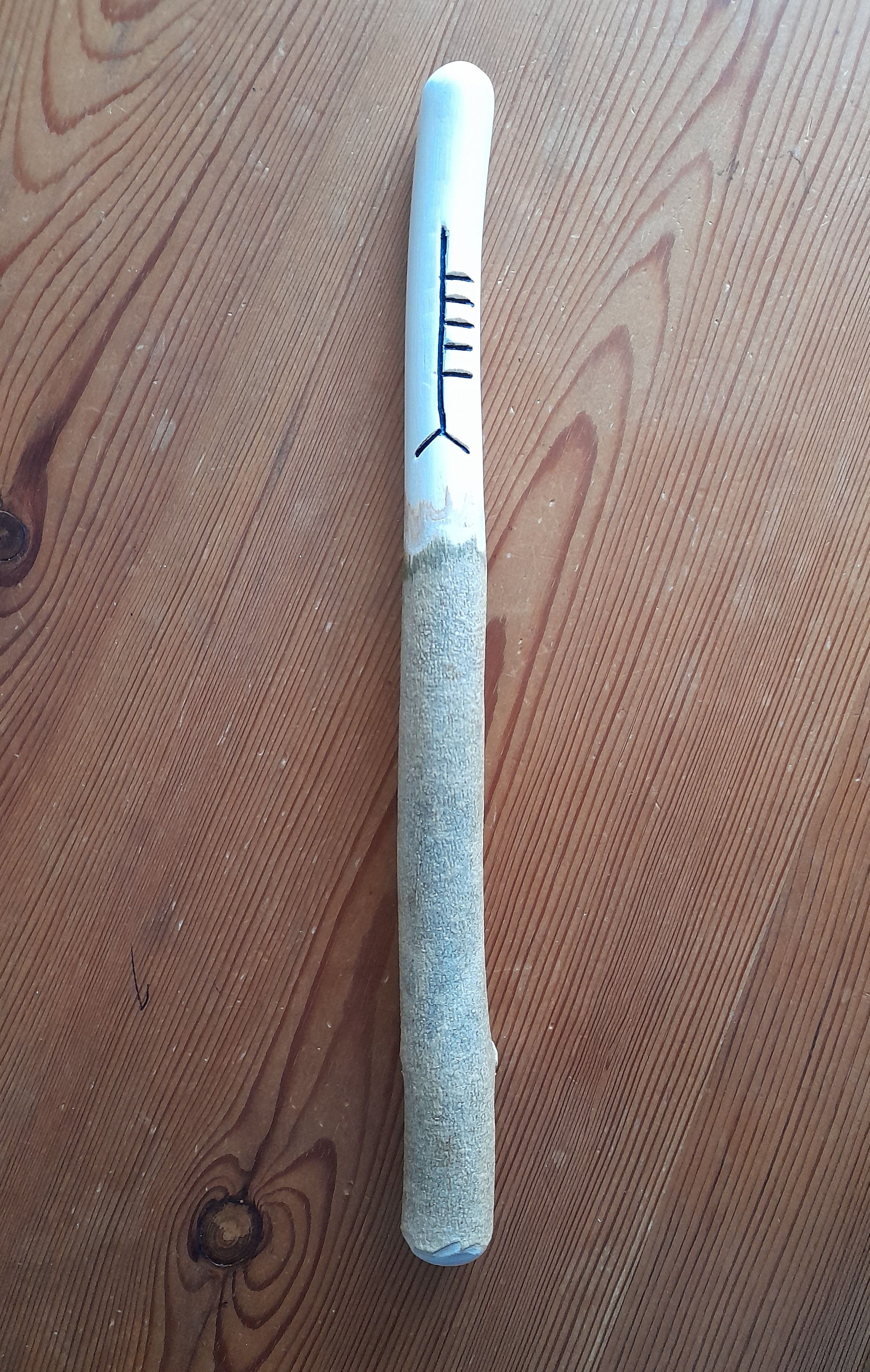 Typically, it has been used for making tools especially handles that absorb shock: hammers, axes, spades and oars. So useful, perhaps that’s why in mythology it has been referred to as the Tree of Life. It is the 5th tree in the Celtic Tree Ogham and below I include a photo of my own piece of ash with the ancient symbol for the tree.